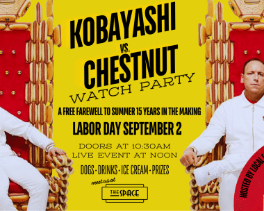 This Labor Day, the two greatest gurgitators in the history of the world face off LIVE on Netflix for the first time in FIFTEEN YEARS. To commemorate this remarkable moment in time, The Space is throwing a gut busting watch party. There will be specialty drinks, entertainment, prizes, and in honor of Joey Chestnut’s current…