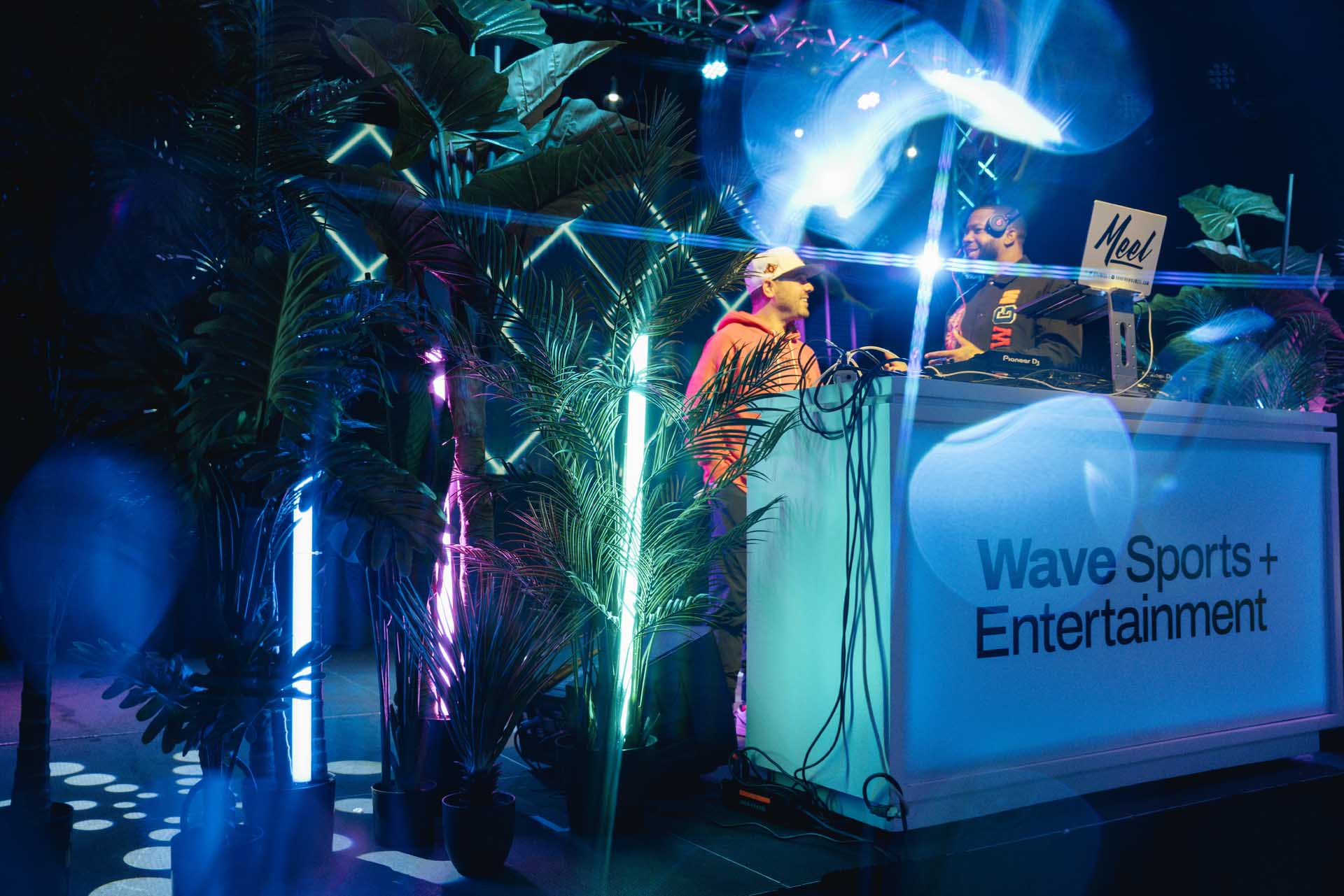In addition to the Kelce House Party, Wave Sports + Entertainment also hosted a “Big Game Pregame” Happy Hour at The Space for its corporate partners and VIP guests. The Miami Vice-inspired decor provided a fun and unique setting for leaders in sports entertainment to mingle and network.